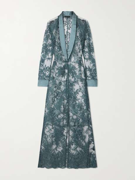 KIKI DE MONTPARNASSE روب Camille من الدانتيل بمزيجٍ من القطن العضوي وحواف من حرير ساتان