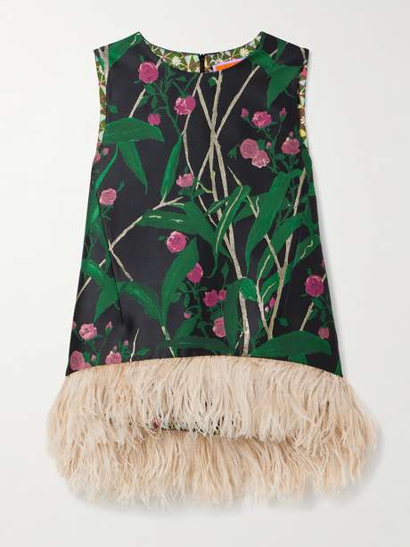 تُصمّم مجموعات La DoubleJ الفاخرة بأسلوب ماكسيمالي لإضفاء لمسة من البهجة على إطلالاتك. وبلوزة 'Icon La Scala' هذه مصنوعة من نسيج محبوك بتقنية الجاكار مع نقشة أزهار ملونة وتتحلّى بحاشية أنيقة مزينة بالريش.