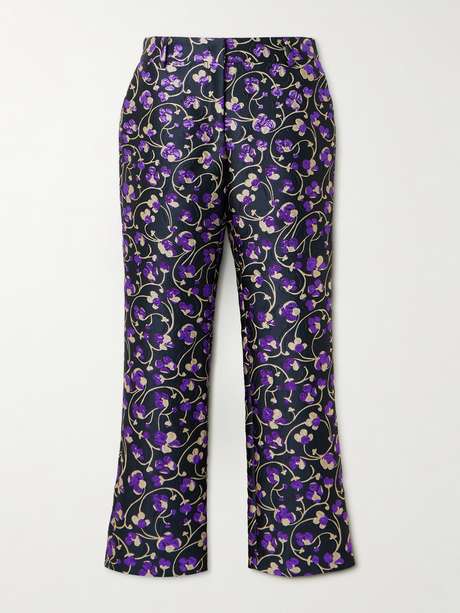 LA DOUBLEJ بنطال 24/7 بأرجل مستقيمة من البروكيد بنقشة الزهور