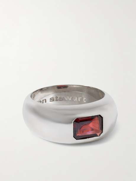 تقدم Loren Stewart هذا الخاتم المثالي لكل يوم. صُنع في الولايات المتحدة الأمريكية ويتميز بحلقة سميكة مصبوبة من الفضة الاسترلينية ومرصّعة بحجر غارنيت بقصة مستطيلة. سيبدو في غاية التميّز مع طلاء أظافر باللون الأحمر.