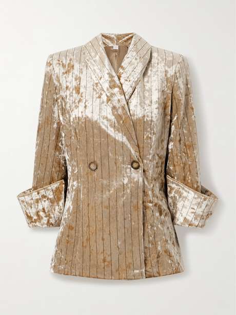 تُقدم علامة Loretta Caponi بليزر 'Quarzo' المصنوع من المخمل المجعّد النافر لإضفاء لمسة ساحرة وأنيقة إلى التصميم الكلاسيكي. يتسم بقصة ضيقة مع ياقة بأسلوب شال وأساور أكمام واسعة يُمكن لفّها.