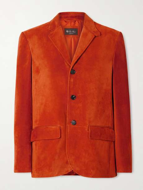 LORO PIANA بليزر Norick من جلد السويد بقطع محاكة بجانب بعضها البعض