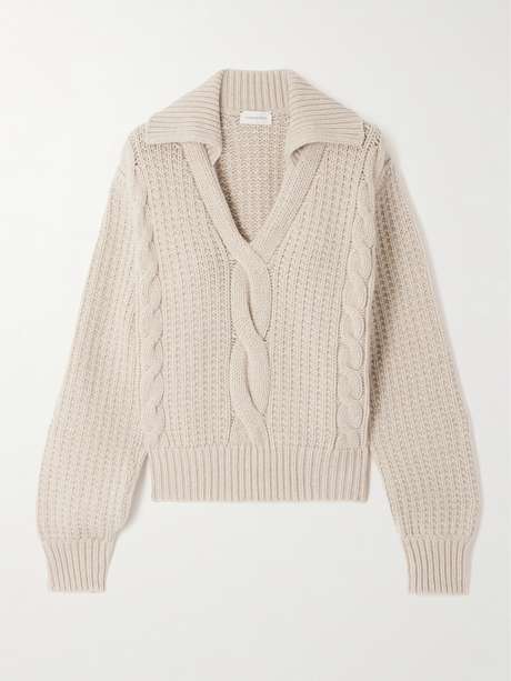 بلوزة بولو من الكشمير من Magda Butrym تأتي ضمن مجموعة خريف 2025، وتستوحي من الحِرف والثقافة البولندية التي شكّلت نشأة المصمّمة. ظهرت لأول مرة على منصة عرض الأزياء، وتأتي محاكة بحبكات متنوّعة تضم الوافل والمجدولة والمضلّعة، لتمنحها نسيجاً غنياً بالتفاصيل. أما الياقة العريضة منفرجة الأطراف وتقويرة العنق المفتوحة، فتسلّط الضوء على الوجه وتضفي لمسة درامية أنيقة على التصميم.
