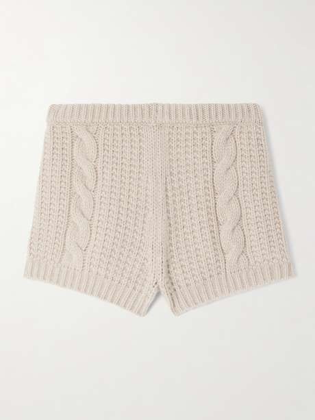 هذا التصميم من Magda Butrym يجسّد صيحة الشورتات الفائقة القصر الرائجة حالياً. صنع من كشمير فاخر مُحاك بحبكة مضلّعة وحبكة مجدولة، ما يمنحه قصّة ضيّقة أنيقة، ويأتي بخصر عالٍ يبرز القوام. نسّقيه مع الكنزة المطابقة وجوارب ضيقة شفافة لإطلالة عصرية جريئة ودافئة.