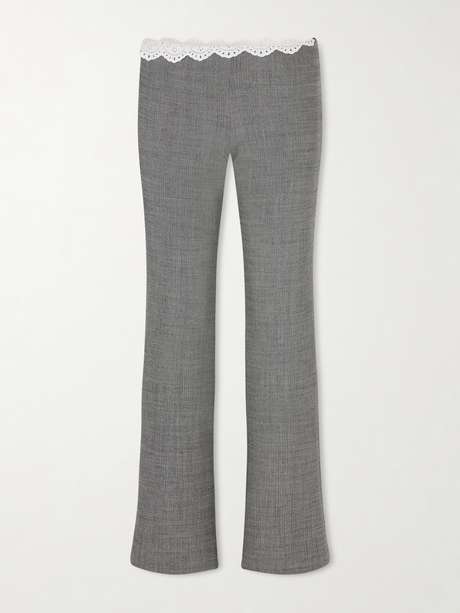 MAGDA BUTRYM بنطال Broderie بحواف واسعة من الصوف المرن ونقشة هيرنج بون مزين بنقشة إنكليزية