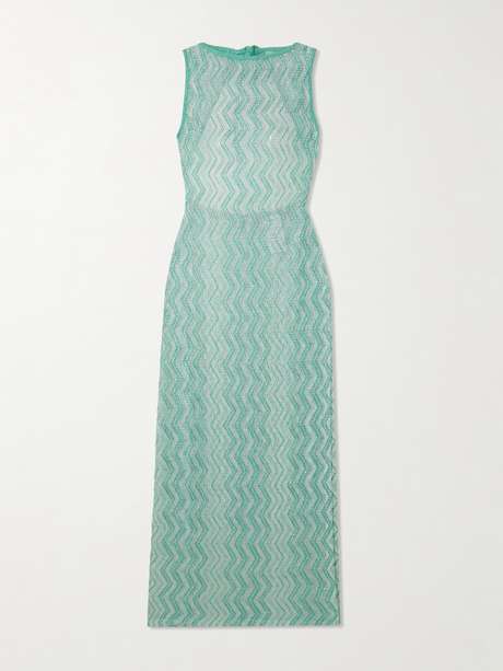 MISSONI رداء بحر من نسيج بحبكة الكروشيه مُخطّط بلمعة معدنية