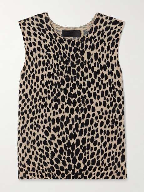 تتميز بلوزة 'Nessa' بدون أكمام من علامة Nili Lotan بمظهر أنيق سواء منسقة بمفردها مع بنطال الجينز أو تحت التصاميم الرسمية. حُبكت من الكشمير الناعم وتزدان بنقشة جلد الفهد العريضة كما وصُممت بقصة مسترخية قليلاً.