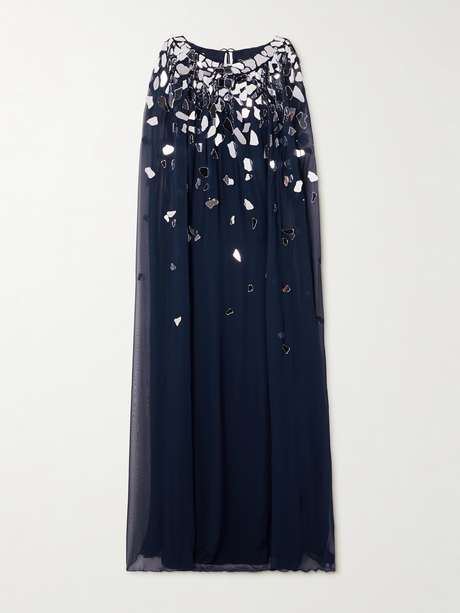 حصرياً لدى NET-A-PORTER. يفيض فستان السهرة هذا من Oscar de la Renta فخامةً وألقاً وقد زُين بزخارف فضية لامعة تُشبه شظايا المرايا - تعكس كل منها الضوء بروعة آسرة في المناسبات. وهو مصنوع بطبقات من حرير الشيفون بتصميمٍ انسيابي متدفق، ويمتاز بأكمام أنيقة بأسلوب الكاب تمنح إطلالتك لمسة درامية راقية.