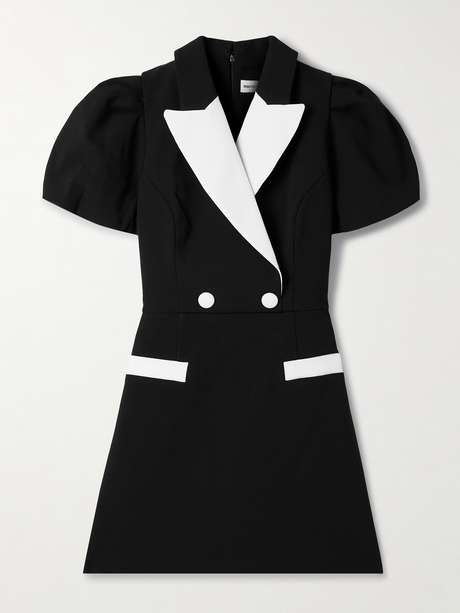 يمتاز فستان 'Emma' القصير من Rebecca Vallance بتفاصيل مستوحاة من جاكيتات رسمية أنيقة، مثل طيات الصدر المدببة والتصميم بصفين من الأزرار. وهو مصنوع من الكريب ويتحلّى بأكمام منفوخة، تُضفي عليه لمسة أنثوية كلاسيكية.