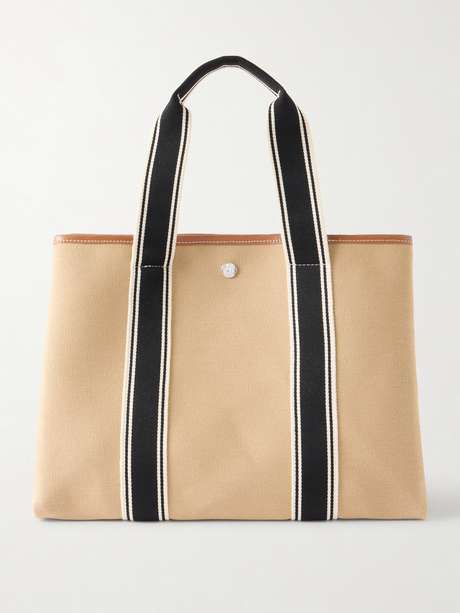 RUE DE VERNEUIL حقيبة توت St Paul Traversée متوسطة الحجم من الكنفا بحواف من الجلد ونسيج محبوك