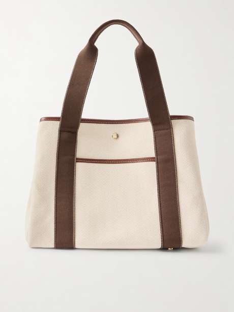 RUE DE VERNEUIL حقيبة توت Traversée متوسطة الحجم من الكنفا مع حواف من الجلد والشريط القماشي