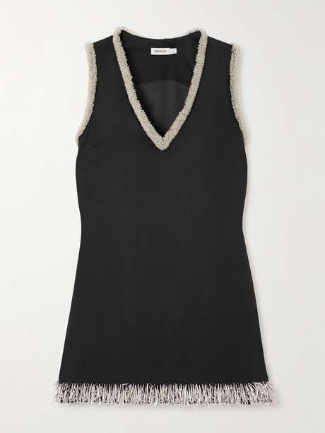 تألقت بتصاميم SIMKHAI الجذابة نجمات شهيرات من مثيلات Kerry Washington، و Anne Hathaway و Dakota Fanning. يأتي فستان 'Darcy' هذا من مجموعة أزيائها لموسم خريف 2025، وهو مصنوع من الكريب الأسود بزخارف براقة تُبرز فتحة العنق العميقة والحاشية القصيرة. نسقيه مع إكسسوارات بلمعة معدنية لإطلالة مشرقة تخطف الأنظار.