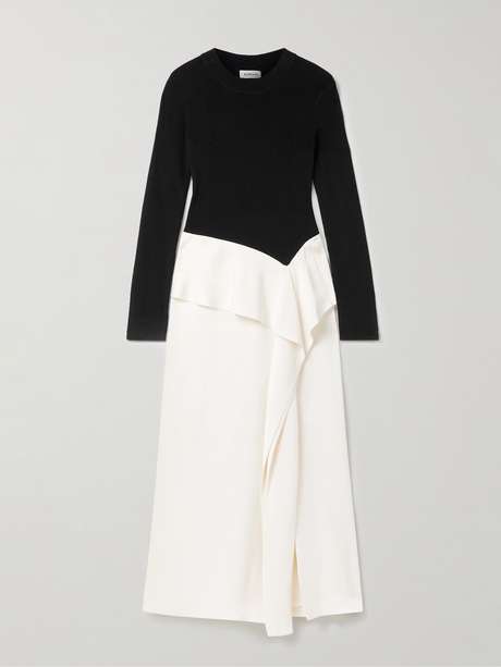 - نسيج محبوك مطاطي باللون الأسود، قماش ساتان باللون العاجي