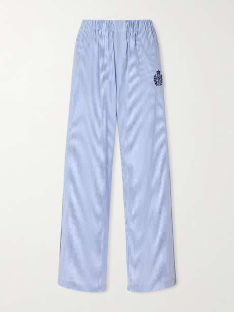SPORTY & RICH بنطال بيجاما من قطن البوبلين مطرّز ومخطّط