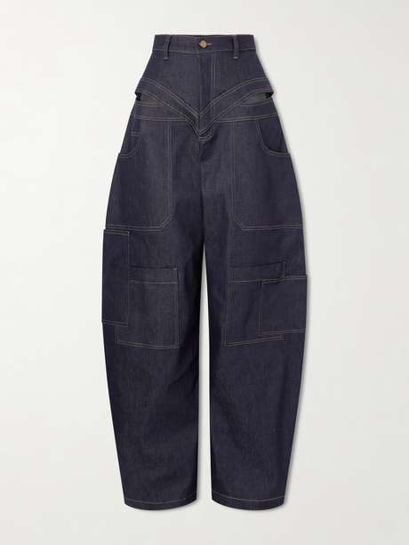 - تصميم بخصر مرتفع وقصّة ذات أرجل واسعة ومنحنية