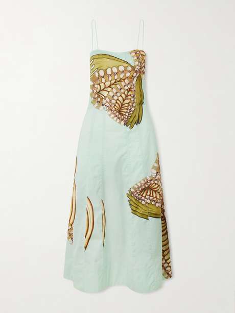 ULLA JOHNSON فستان متوسط الطول Vesela من قطن البوبلين بطبعات وبثنيات