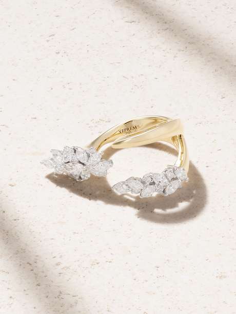 YEPREM خاتم من الذهب الأبيض والأصفر 18 قيراط والألماس