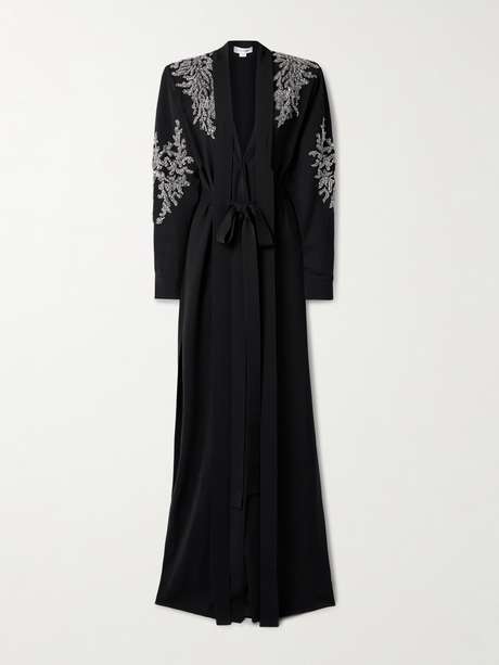 يقدم Zuhair Murad تصميمات للسهرة تتميز بزخارف غنية بالتفاصيل ومنفذة بدقة فائقة، مما يجعلها مثالية لإطلالات على البساط الأحمر. مثال على ذلك، فستان السهرة هذا المصنوع من الكريب والمزين بالكريستال، والخرز والأقراص البراقة على الأكتاف المبطنة والأكمام البلوزون لإضفاء لمسة من التألق على إطلالتك. وهو يتحلّى بتقويرة عنق على شكل V عميقة مُحاطة بأربطة طويلة ويأتي مع حزام لشدّه عند الخصر وإبراز شكل الجسم بأسلوبٍ أنثوي راقٍ.