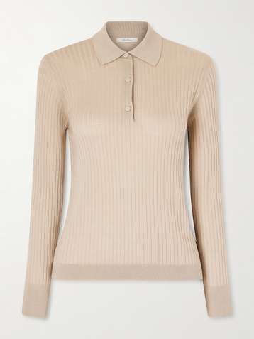 كنزة رياضية بولو بمزيجٍ من الكشمير والحرير المضلّع