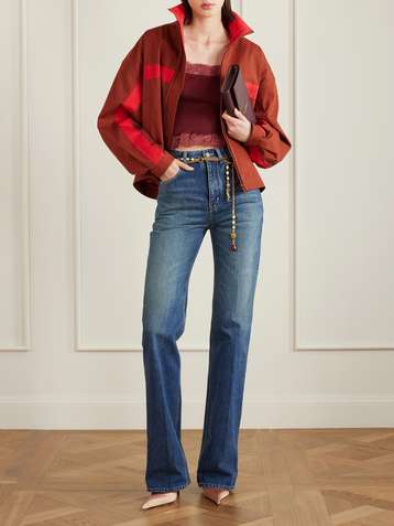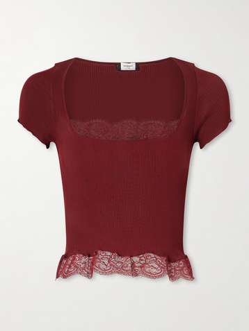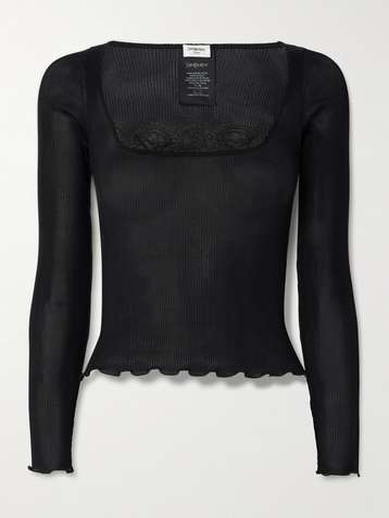 Cropped Leavers lace-trimmed ribbed silk-jersey top