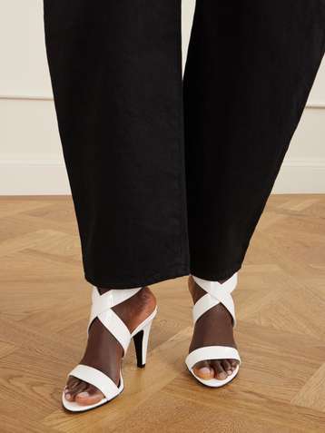 صندل Pietro من الجلد اللامع بكعب مقاس 20 مم