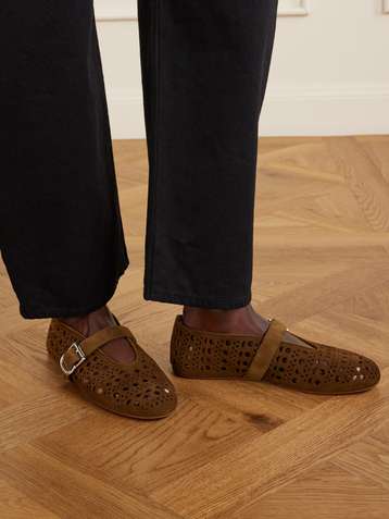 حذاء باليرينا من جلد السويد مقصوص بالليزر
