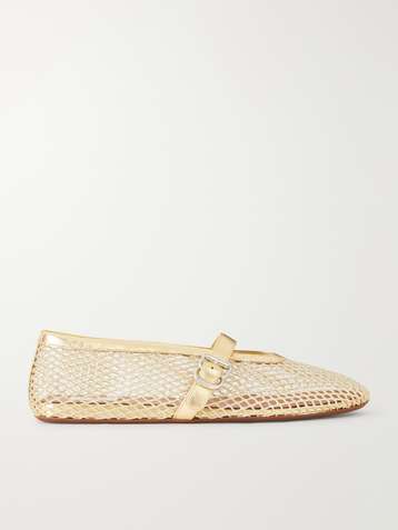 حذاء باليرينا من الشبك بحواف من الجلد بلمعة معدنية