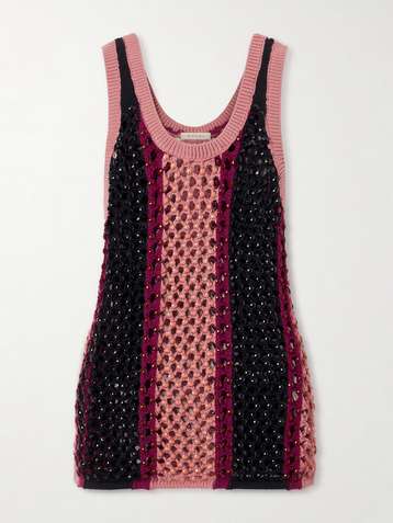 بلوزة بدون أكمام Dennis من مزيج من القطن بحبكة كروشيه مخطّطة ومزينة بالكريستال