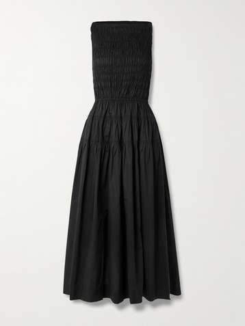 فستان Melie متوسّط الطول وبتأثير مزموم من قماش البوبلين القطني العضوي بثنيات وقطع محاكة بجانب بعضها البعض