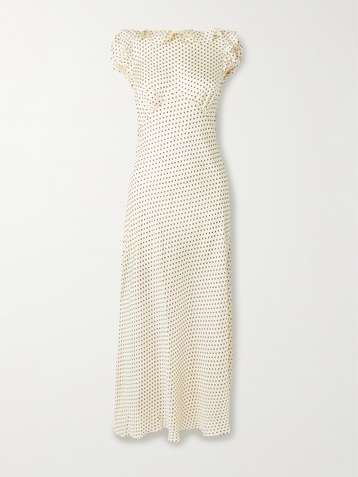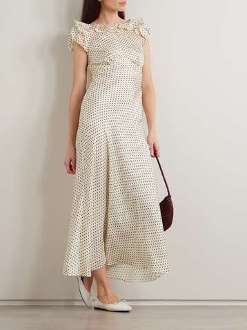 فستان Emerence متوسط الطول من مزيج حرير التويل بنقشة البولكا دوت وبكشاكش