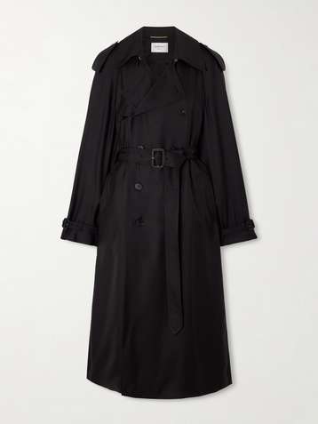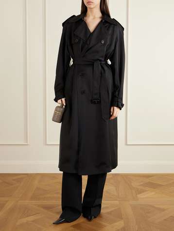 Double-breasted belted silk-twill trench coat