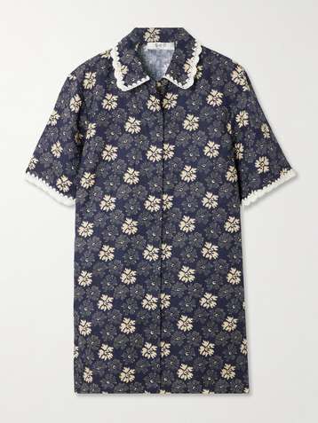 فستان قصير Gloria من الكتّان مُطرّز وبطبعات