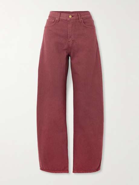 يتميز بنطال جينز 'Leroy' من B Sides بقصّة مسترخية ذات أرجل واسعة ومنحنية تمنحه طابعاً عصرياً مريحاً. يأتي بخصرٍ متوسط الارتفاع كلاسيكي مع حواف تضيق قليلاً نحو الأسفل، وقد خضع لعملية صبغ إضافية أضفت عمقاً وتدرجات أنيقة على لونه النبيذي الغني.