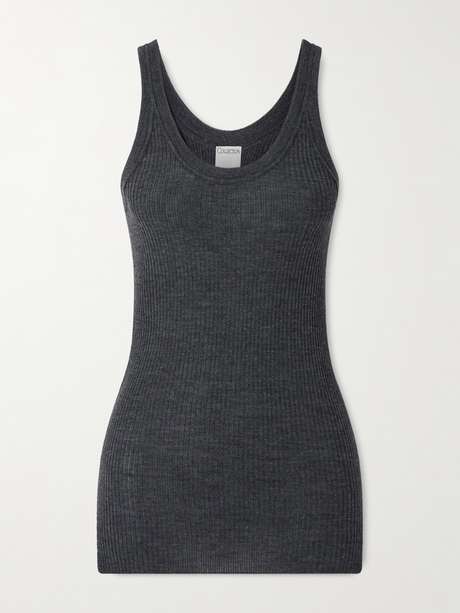 CALVIN KLEIN COLLECTION بلوزة Ella بدون أكمام من الصوف المضلّع