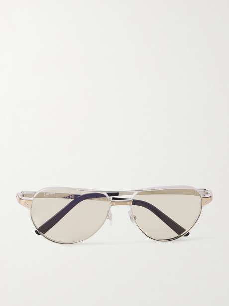 CARTIER EYEWEAR نظارات شمسية Santos de Cartier بأسلوب أفياتور من معدن باللونين الذهبي والفضي