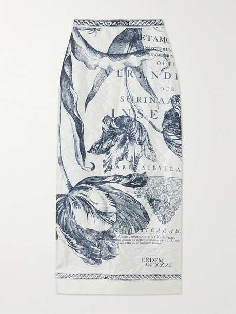 ERDEM تنورة متوسط الطول من الساتان المجعّد بطبعات