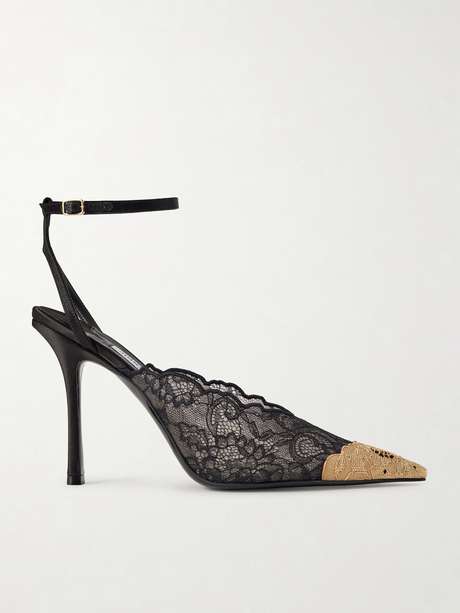 JIMMY CHOO حذاء بامب Faiz من الدانتيل بحاشية من الساتان مزركش وبكعب مقاس 100