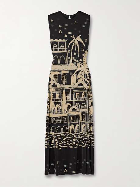 JOHANNA ORTIZ فستان طويل Cardinal Direction من ساتان الجيرسي بطبعات