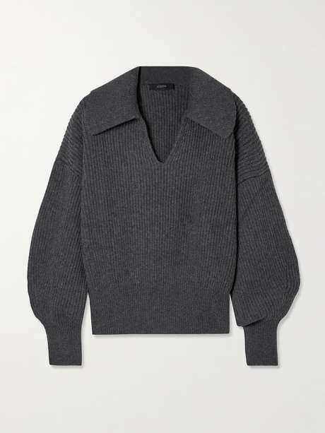 تشكّل كنزة البولو المضلّعة من توقيع Joseph قطعة أساسية خلال الأشهر الباردة، بفضل المزيج الفاخر الناعم من الصوف، والحرير والكشمير. تتميّز بأزرار مخفية مفتوحة، وأكمام بلوزون وأكتاف هابطة بقطع محاكة بجانب بعضها البعض لابتكار مقاس مسترخٍ.
