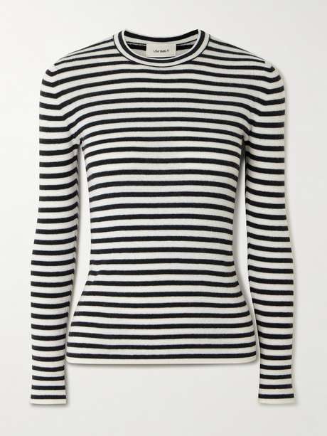 LISA YANG بلوزة Vivian مخططة ومضلعة من مزيج الكشمير والقطن