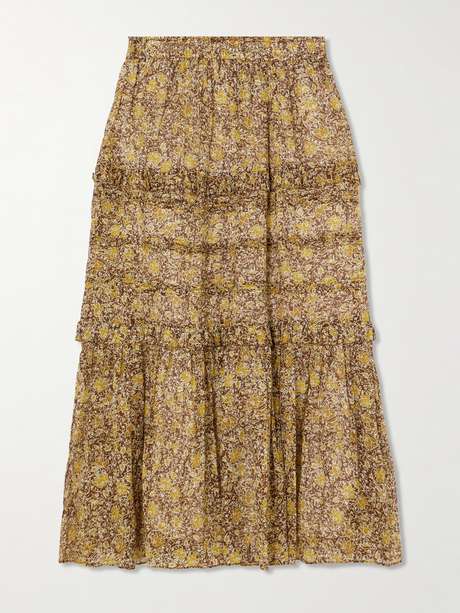 MARANT ÉTOILE تنورة متوسطة الطول Volomia بطبقات من القطن بطبعة الأزهار