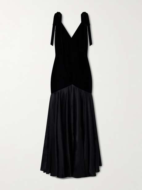 RODARTE فستان سهرة من حرير الساتان والمخمل مزين بربطة