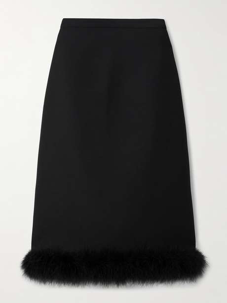 VALENTINO GARAVANI تنورة من الكريب بمزيج حرير وصوف مع حواف من الريش