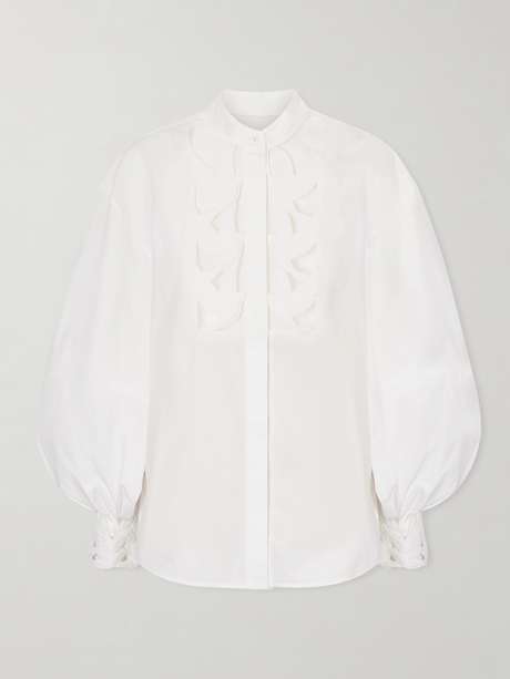 ZIMMERMANN بلوزة Luna مطرّزة من قطن البوبلين بقطع محاكة بجانب بعضها البعض من نسيج شبكي
