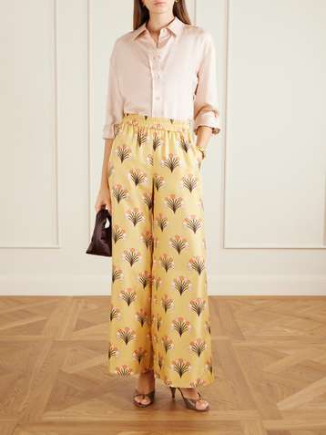 بنطال Palazzo بأرجل واسعة من الحرير بطبعات