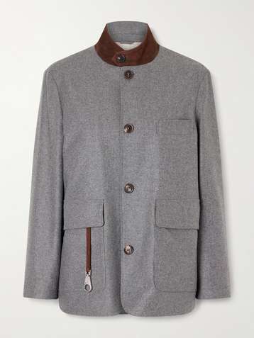 جاكيت Roadster من مزيج الصوف والكشمير بحاشية من جلد السويد