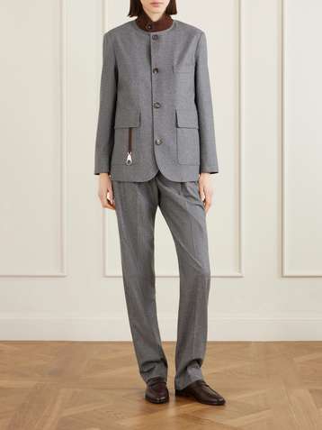 جاكيت من حرير التويد بحاشية من جلد السويد