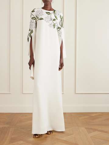 فستان سهرة من الكريب بمزيج من الحرير مزركش ومطرز