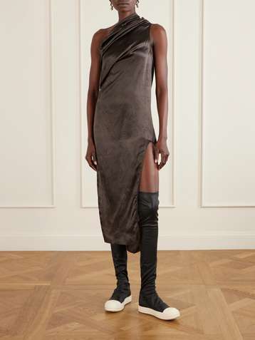 فستان Athena متوسط الطول من الساتان بكتف واحدة