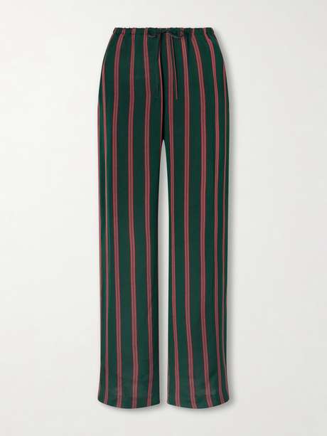 DRIES VAN NOTEN بنطال واسع الساقين من الساتان المُخطّط